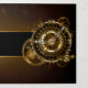 Antique, fantastic watches with gold and brass gears on a brown, rusty background. Steampunk style.