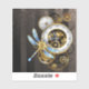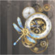Antique dials with gold and brass gears, decorated with mechanical dragonfly on brown, striped background. Steampunk.