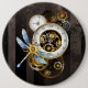 Steampunk Clock with Mechanical Dragonfly 6 Cm Round Badge