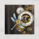 Steampunk Clock with Mechanical Dragonfly Calling Card