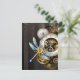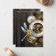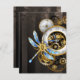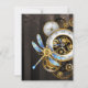 Antique dials with gold and brass gears, decorated with mechanical dragonfly on brown, striped background. Steampunk.