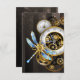 Antique dials with gold and brass gears, decorated with mechanical dragonfly on brown, striped background. Steampunk.