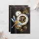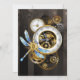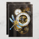 Antique dials with gold and brass gears, decorated with mechanical dragonfly on brown, striped background. Steampunk.