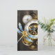 Antique dials with gold and brass gears, decorated with mechanical dragonfly on brown, striped background. Steampunk.
