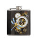 Steampunk Clock with Mechanical Dragonfly Hip Flask
