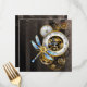 Antique dials with gold and brass gears, decorated with mechanical dragonfly on brown, striped background. Steampunk.