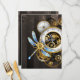 Antique dials with gold and brass gears, decorated with mechanical dragonfly on brown, striped background. Steampunk.