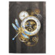 Steampunk Clock with Mechanical Dragonfly Tablecloth