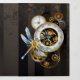 Steampunk Clock with Mechanical Dragonfly Tri-Fold Invitation