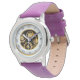 The watch looks exactly as depicted. I was especially pleased with the watch band, which is a nice quality, supple leather. I point this out because an option, which was sold out, was with a multi-colored but clearly plastic band. This is the better choice, in my view.