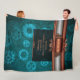 Steampunk, copper on teal cogwheels, Monogram Fleece Blanket