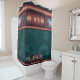 Steampunk, copper on teal sprockets, Monogram Shower Curtain