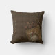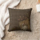 Steampunk design pillow with brown woven look background embellished digitally with skeleton keys on a string, ribbon with grommets tied in a bow, gears, fabric look pocket with gears tucked partly inside, button and the word "Steampunk" across the top. Backside of pillow has no embellishments other than background.