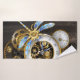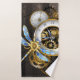 Antique dials with gold and brass gears, decorated with mechanical dragonfly on brown, striped background. Steampunk.