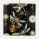 Steampunk Dragonflies on brown striped background Ceramic Ornament
