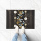 Antique dials and keys with gold and brass gears, decorated with mechanical, steampunk dragonflies on brown, striped background.