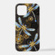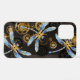 Antique dials and keys with gold and brass gears, decorated with mechanical, steampunk dragonflies on brown, striped background.