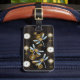 Steampunk Dragonflies on brown striped background Luggage Tag