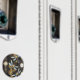 Antique dials and keys with gold and brass gears, decorated with mechanical, steampunk dragonflies on brown, striped background.