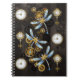 Antique dials and keys with gold and brass gears, decorated with mechanical, steampunk dragonflies on brown, striped background.