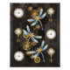 Antique dials and keys with gold and brass gears, decorated with mechanical, steampunk dragonflies on brown, striped background.