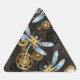 Steampunk Dragonflies on brown striped background Triangle Sticker