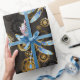 Steampunk Dragonflies on brown striped background Wrapping Paper