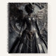 This detailed steampunk fantasy artwork of the fashion for a darkness demon with lace-like wings in shades of black and grey on this artwork notebook.