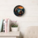 Wall Clock, 25.4 cm Round Black Wooden Frame