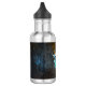 Steampunk firefly with blue transparent wings and green light bulb on worn, brown, textured background. Steampunk style.