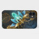 Steampunk firefly with blue transparent wings and green light bulb on worn, brown, textured background. Steampunk style.