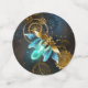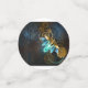 Steampunk firefly with blue transparent wings and green light bulb on worn, brown, textured background. Steampunk style.