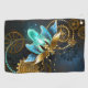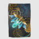 Steampunk firefly with blue transparent wings and green light bulb on worn, brown, textured background. Steampunk style.