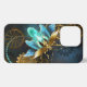 Steampunk firefly with blue transparent wings and green light bulb on worn, brown, textured background. Steampunk style.