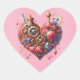 Steampunk Floral Pink and Gold Heart Sticker