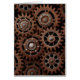 This steampunk inspired design features different styles of overlapping gears. The metallic textures and rusty colours gives this pattern the look of well used machinery. The gears sit on a dark steel mesh background that helps to create the industrial feel.