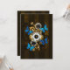 Composition of round steampunk clock with black Roman numeral dial, decorated with gold and brass gears, blue Morpho butterflies and damaged lenses on brown striped background. Steampunk style.
