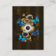 Composition of round steampunk clock with black Roman numeral dial, decorated with gold and brass gears, blue Morpho butterflies and damaged lenses on brown striped background. Steampunk style.