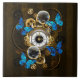 Steampunk Gears and Blue Butterflies Ceramic Tile