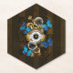 Steampunk Gears and Blue Butterflies Paper Coaster
