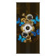 Composition of round steampunk clock with black Roman numeral dial, decorated with gold and brass gears, blue Morpho butterflies and damaged lenses on brown striped background. Steampunk style.