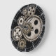steampunk gears cogs metal machine clock. For lovers of the steam punk genre this mix of cast iron, shiny and dull metallic watch engine clock is a dream gift. The ancient looking gears and cogs of the clock and the iron numbers on a black panel make this mechanical engine clock an easy to read yet interesting machine and a perfect victorian steampunk gift. Background can be customised to a colour of your own choosing by clicking CUSTOMIZEIT>EDIT>BACKGROUND and choose your colour from the menu presented. To return to the original and start again simply refresh the page. Available in small and large round clock or square clock