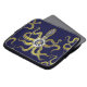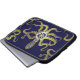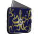 This tentacled steampunk sea monster has eight wire-like gold appendages, a central silver gear and plenty of gears and bolts making up its head, eyes and suction cups. It's a robot octopus / kraken, a metal machine monster for anyone who likes geeky science-fiction / fantasy creatures. On this laptop sleeve, tentacles also reach in from the corners. Blue background colour is customisable.