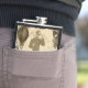 The flask itself is fine. It’s a cheap flask, obviously bought in bulk, however am prepared to overlook that. Given that it is a personalized item, I would have liked to have seen gift boxing instead of the generic packaging. Terrible printing, and/or quality. It’s a cheap, tacky vinyl. It is not cut straight and is also applied in a way that it is overhanging the bottom, causing the glue to catch on items and it will eventually roll and tear, damaging the wrap.