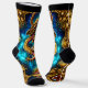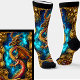 Steampunk Golden Dragon & Blue Sky on Black Socks