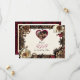 Pretty wedding Save the Date card with a steampunk theme. Shiny metal flowers in gold, copper and burgundy border this wedding invitation.