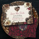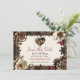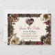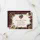 Pretty wedding Save the Date card with a steampunk theme. Shiny metal flowers in gold, copper and burgundy border this wedding invitation.