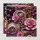 Pretty personalised gothic Victorian steampunk photo template Valentine's Day card. Beautiful pink roses, gold, silver and copper metal gears. The back has three spaces for pictures in the shape of a heart. You can edit the text too in the personalise area.