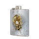 The flask itself is fine. It’s a cheap flask, obviously bought in bulk, however am prepared to overlook that. Given that it is a personalized item, I would have liked to have seen gift boxing instead of the generic packaging. Terrible printing, and/or quality. It’s a cheap, tacky vinyl. It is not cut straight and is also applied in a way that it is overhanging the bottom, causing the glue to catch on items and it will eventually roll and tear, damaging the wrap.