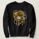 Conceptual, mechanical, human head with antique manometer and metal gears against grey industrial background. Steampunk style.